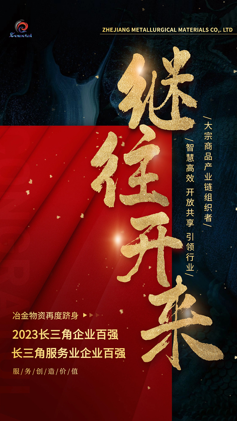 12月6日,浙江省冶金物資有限公司再次入圍2023長三角企業(yè)百強榜單,位列98位,躋身服務(wù)業(yè)企業(yè)百強榜單35位。